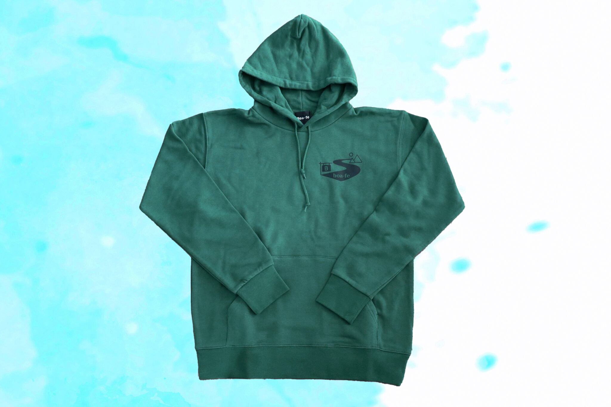 大きめ2重フードがうれしい、しっかりとした厚手のパーカー。